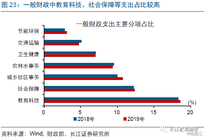 此外,一般债主要投向扶贫、环保和无项目收益的基建等相关领域,其中基建占比逐年下滑。按照一般新券募资用途说明,我们将一般新券投向总结归纳为三类,基础设施建设类包括道路桥梁、市政建设等,优先用于扶贫、民生及环保类主要包括精准扶贫、生态环保等,纳入一般财政管理类指债券用途说明未大致划定范围、只提及纳入一般财政预算管理的一般新券[2]。一般债优先用于扶贫、民生及环保类占比较为稳定、今年达39%;基础设施建设类占比逐年下滑,由2018年的48%下降至今年的18%;纳入财政预算管理的,从一般财政支出来看,教育科技、社会保障支持占比较高。