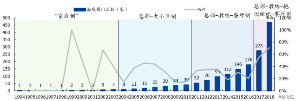 餐厅受制于厨师水平、菜品质量等供应链环节的不确定性,连锁品牌的管理难度会随着企业扩张而不断增大。海底捞所处的火锅行业,因为不需要对菜品做过多调味,因此相较其他菜系更容易形成标准化。同时,标准化的食材供应和管理体系保证了海底捞的产品和门店服务都高度统一,从不同制度更迭导致门店拓展速度变快可以看出海底捞已经解决了标准化扩张问题。