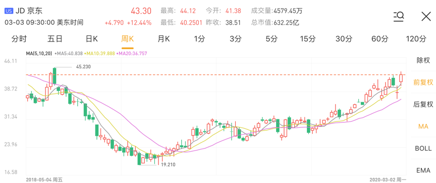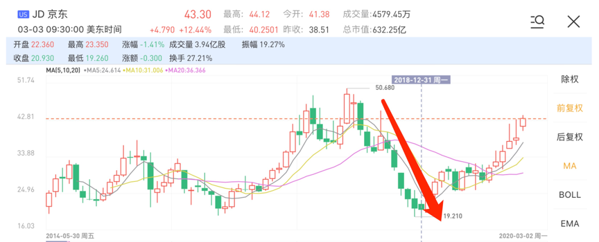 3月2日盘前,京东发布2019年Q4及全年业绩。财报发布后,京东的表现可以说是让所有投资者都松了一口气,公司股价也趁着美股反弹的良机一口气大涨超12%,强势回到近期高点。