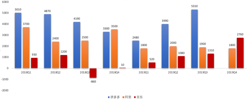 根据财报信息,京东在19Q4有大量的新用户来自京喜。作为一款主攻下沉市场的产品,京喜在上线初期就接通了微信端,腾讯给予的大量流量的支撑使得京喜用户快速成长,成为京东对抗拼多多的针对产品。