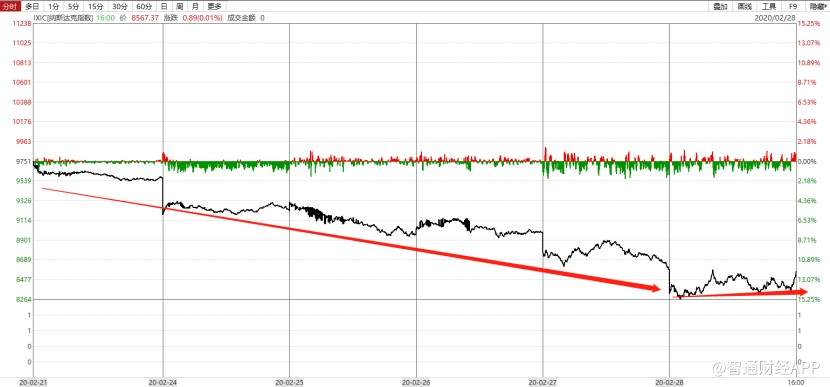 上周,由于疫情在意大利、韩国、日本三地开始爆发,整个外围股市都笼罩在突发的全球流行的阴霾当中,市场情绪极度悲观, 纳指在有如水银泻地的一通暴跌后,周五开始站稳。