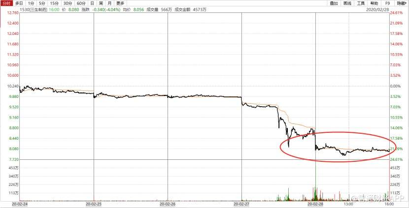 覆巢之下,岂有完卵,在这种系统性的大跌面前,除了部分疫情受益概念股之外,大部分的公司都是泥沙俱下,历史就是这么有趣,在系统性风险的冲击下,三生制药(01530)又来到了2019年初的一模一样的场景:
