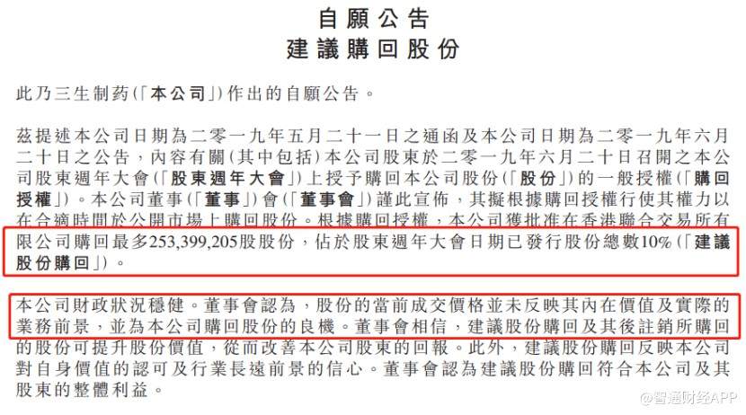 2018年下半年,从《药神》到疫苗之王,持续冲击医药股估值,最终在年底的4+7带量采购把整个行业的情绪打到谷底,行业性的持续大跌,三生的核心品种都是生物药,本不受政策影响,但是也走不了独立行情,跟随行业大跌,随后,公司在2018年12月19日-2019年1月3日的低位区间,持续回购(上市以来首次),累计回购8233.43万,均价8.46元/股,随着利空情绪的消退和业绩的确认,股价走出一波估值修复行情,区间最大涨幅超过90%,由此可见:1)管理层关注公众股东价值和感受;2)管理层对于时机的把握很讲究。