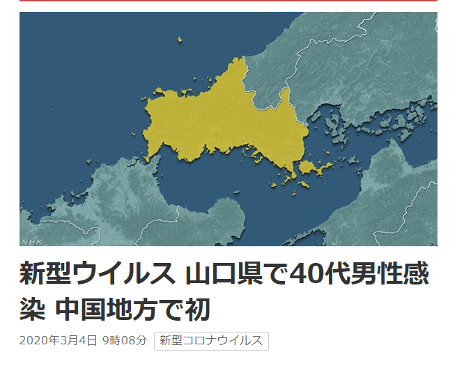 【环球网报道 记者 崔天也】据日本广播协会(NHK)4日最新消息,日本山口县一名40岁男子确诊感染新冠肺炎。NHK称,这是日本该地区出现的首例确诊病例。