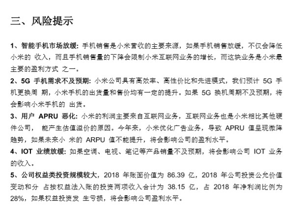 A:一是整个智能手机总量比较大了,现在处于整体放缓的市场,不要对它有太高的预期。二是手机换机潮换机量没有那么多,速度没那么快,因为5G应用发展没有那么快,不会像2G、3G、4G手机更迭增量那么大。三是用户UP值在恶化,小米利润主要来自互联网,它很多广告做了优化后,在2019年收入降低的比较厉害,这一块希望通过整治和经济复苏,广告收入能够有些提升。