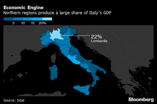 目前正在评估的措施将进一步打击这个在病毒爆发前已经迈向衰退的国家。意大利政府正在研究一项价值36亿欧元(40亿美元)的经济刺激方案,据一位官员称,政府已准备好将赤字提高至国内生产总值的2.4%以上。