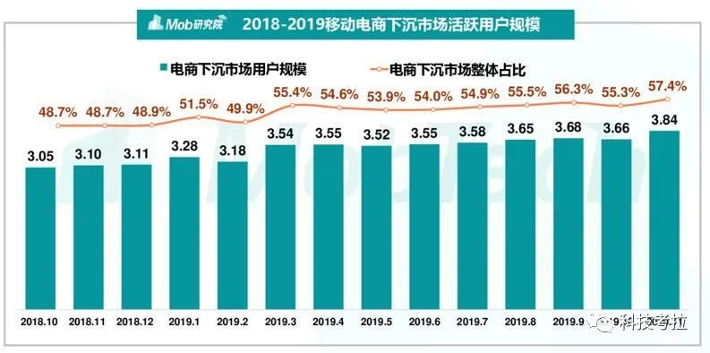 实际上,下沉市场已经成为阿里(09988)、京东和拼多多最大的正面战场。据Mob研究院的《2019电商“下沉市场”研究报告》,下沉市场的电商用户规模目前维持在3亿以上,且占比还在逐步提高。