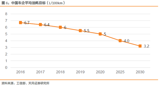 油耗、排放法规趋严助推汽车技术革新。根据工信部的规划,汽车CO2排放要从15年155g/km下降至2020年112g/km,平均油耗从6.9/L100km降至5.0L/100km, 2025年降到4L/100km,2030年降至3.2L/km。平均油耗下降的关键技术有提升发动机热效率、汽车电动化、轻量化等。