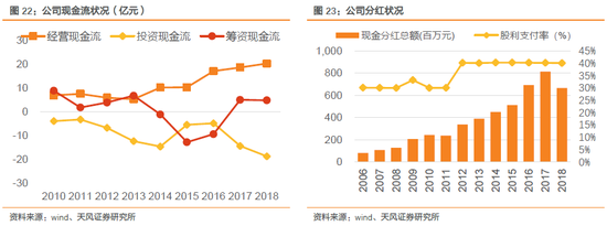 现金流稳定,分红率稳定于40%,彰显龙头企业实力。作为国内零部件龙头,公司良好的现金流状况体现抵御风险的能力,经营性现金流量稳定在相对较高水平,2016至2019上半年,分别为17.23、18.75、20.41、12.19亿元。且公司于2015年12月上市,2006年至今每年保持分红,现累计实施现金分红13次,累计现金分红48.62亿元,股利支付率高达40%。