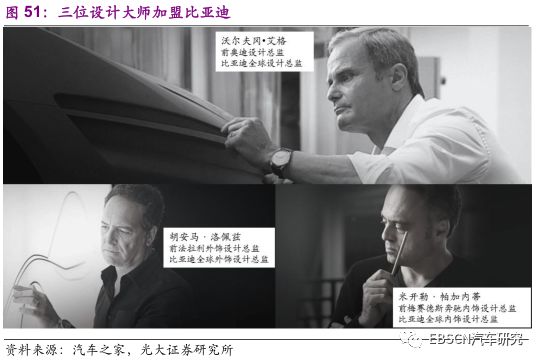 2019年,前法拉利外观设计总监胡安马·洛佩兹及前梅赛德斯奔驰内饰设计总监米开勒·帕加内蒂加盟比亚迪,分别担任全球外饰设计总监及全球内饰设计总监。胡安马·洛佩兹曾服务于兰博基尼品牌、奥迪集团、西亚特、法拉利等品牌,拥有丰富的设计经验。米开勒·帕加内蒂早前是梅赛德斯奔驰意大利设计中心的负责人,奔驰C Class、GLC、A Class和新款S Class等车型的内饰设计均出自他之手。三位大师合力形成的比亚迪设计“三驾马车”,实现比亚迪产品设计的突破。