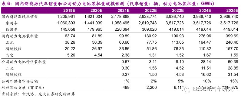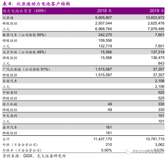 当前公司动力电池外供规模甚小。2019年公司动力电池外供约3千kWh,仅占公司总出货量的0.03%。2019年开始向长安汽车E-Rock供三元锂电池。