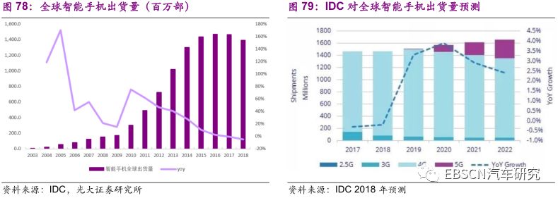 2018年IDC预计全球智能手机市场2019年到2022年可维持2.5%的年复合增长率,最终达到16.54亿部。2020年5G手机规模可迅速达到2.12亿部,占据全球7%的份额,此后到2022年可增至18%。