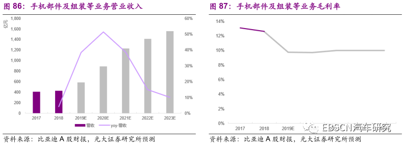 手机业务:以比亚迪电子(0285.HK)财务数据近似;