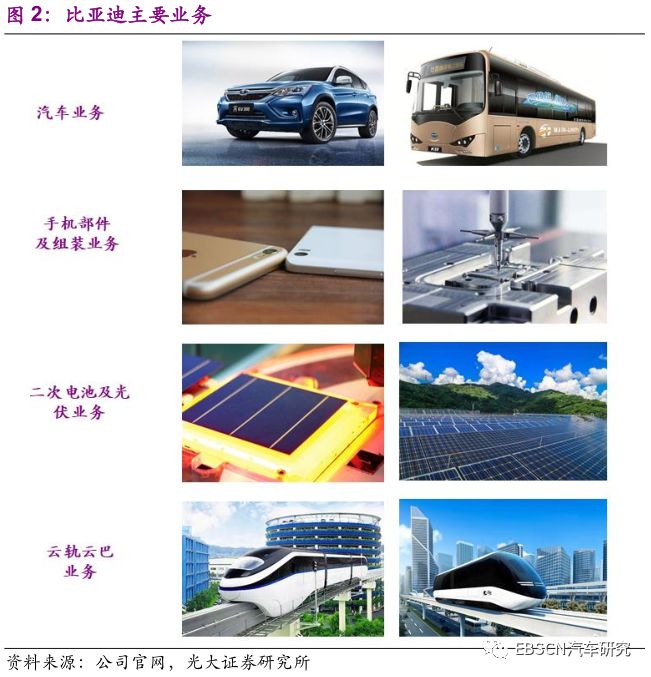 公司主要从事包含传统燃油汽车及新能源汽车在内的汽车业务、手机部件及组装业务、二次充电电池及光伏业务,并通过跨座式单轨“云轨”产品积极拓展城市轨道交通业务领域,各项业务协同发展。