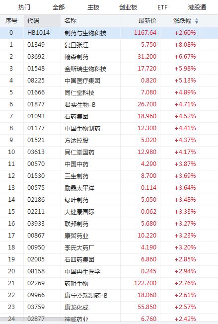 3月5日消息,港股恒指涨幅扩大至1%,国企指数涨0.95%;红筹指数涨0.75%。医药股、苹果概念股、内险股集体上涨。蓝筹股石药集团、中生制药大涨4%。