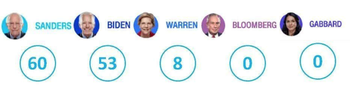来源:CNBC,截止到超级星期二之前,桑德斯得票在民主党初选中位居第一