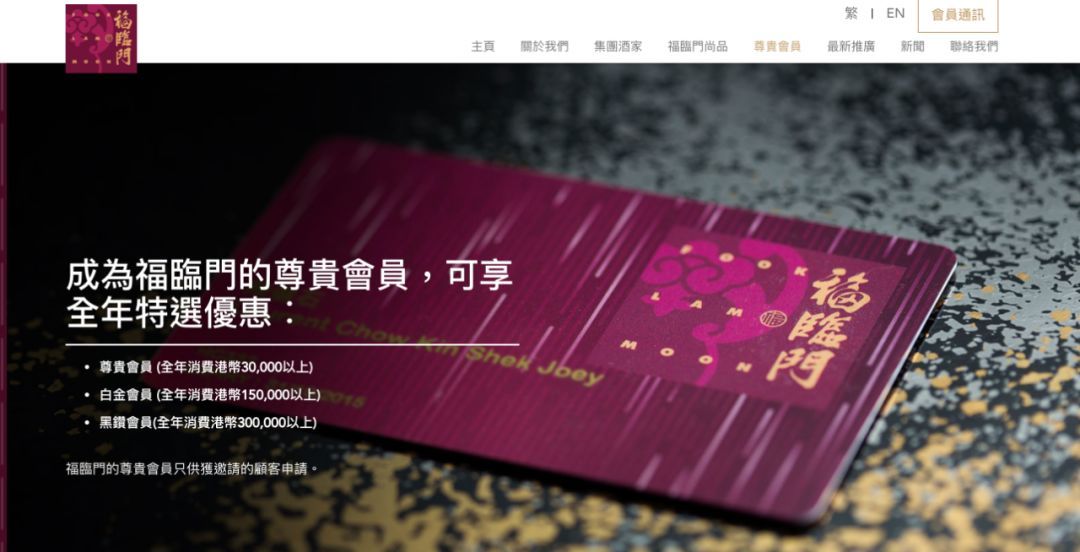 小财女从官网注意到,福临门提供会员服务,分尊贵、白金和黑钻三个级别,相对应的消费门槛则是每年3万、15万和30万港元。同样,哪怕是最基础的尊贵会员,也不是你想氪金就有这个资格,需要福临门先邀请,顾客才能申请。