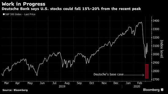 据德意志银行,美国股市与病毒有关的跌势可能刚刚进行到一半,并可能导致股市进入熊市。