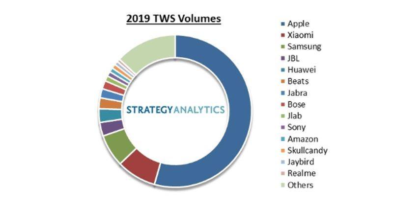 2019年的TWS蓝牙耳机出货量(来源:Strategy Analytics)
