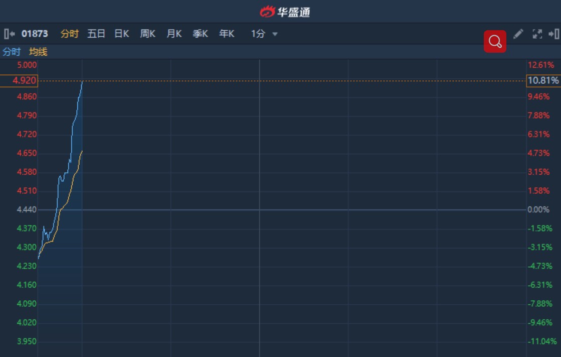 维亚生物(01873)获纳入恒生港股通等7大指数,并于今日生效。该股早盘股价直线拉涨,截至10时00分,涨10.81%,报价4.92港元,成交额2682万。