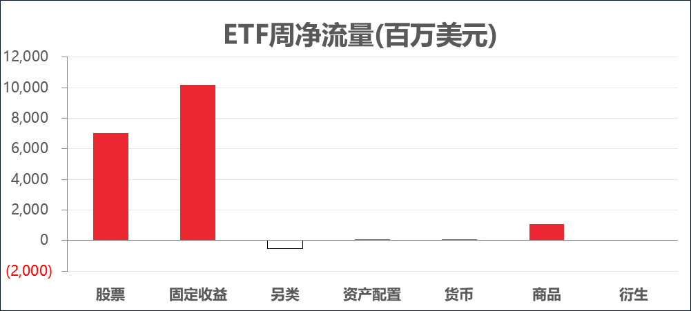 上周全球市场震荡加剧,但继前一周股债全面资金出逃之后,上周资金再次回流,其中固定收益类最受追捧,反映资金避险需求。