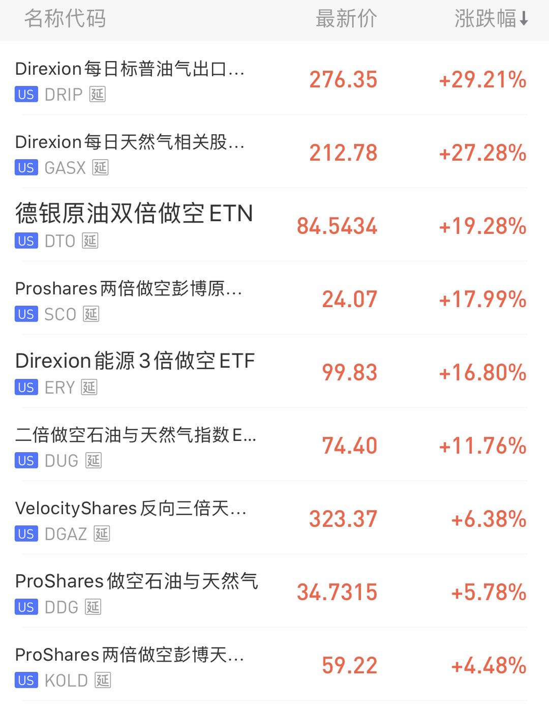 值得注意的是,此前一周能源表现已经相当惨烈,而与之相反,相关做空ETF则纷纷大涨: