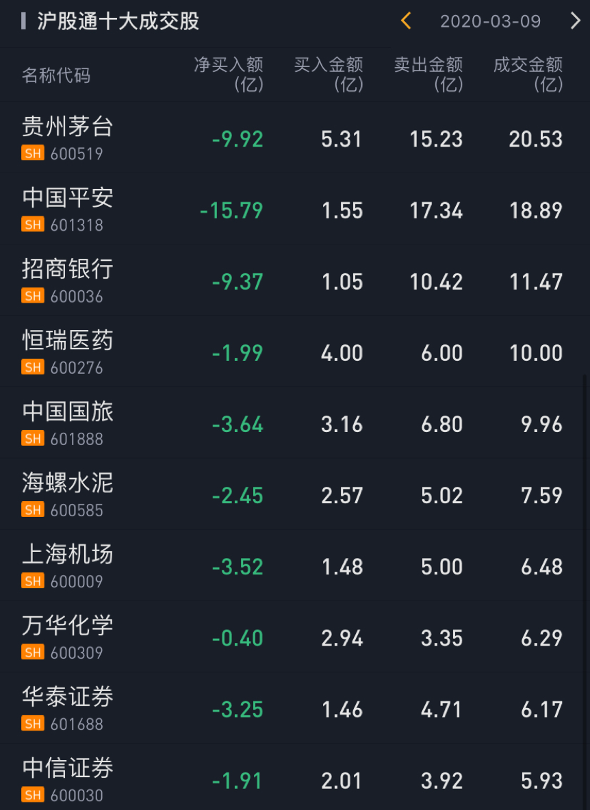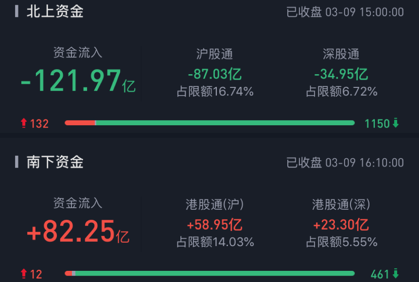 北上资金今日流出121.97亿元,沪股通净卖出贵州茅台9.92亿元,净卖出中国平安15.79亿元,净卖出招商银行9.37亿元