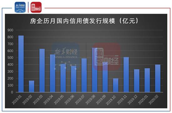 图1:2019年至2020年2月房企历月国内信用债发行规模