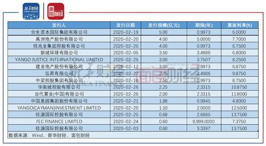 另外,禹洲地产、佳兆业集团、新城环球、YANGO JUSTICE INTERNATIONAL LIMITED(阳光城境外子公司)以及建业地产单只美元债的募资规模也达到或超过3亿美元。