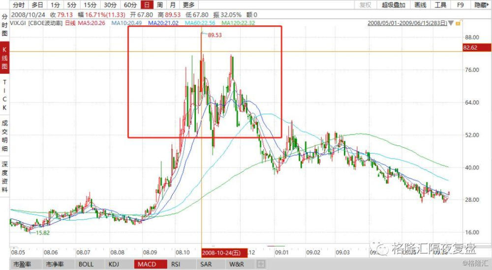 例如2018年10月到12月间,Vix曾维持两个月在50以上,那对应股市就风云飘摇了。。。