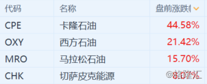 格隆汇3月10日丨随着今日国际油价出现反弹走势,昨日暴跌的美股石油股今日盘前已出现明显上涨走势,其中,昨日暴跌68%的卡隆石油盘前涨超40%,昨日暴跌52%的西方石油盘前涨超20%,昨日暴跌46%的马拉松石油盘前涨超15%,昨日跌27.5%的切萨皮克能源盘前涨8%。