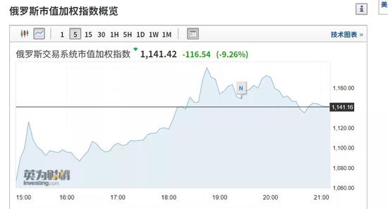 其中的特例是俄罗斯股市,俄罗斯RTS指数一度大跌15%,随后有所收窄,截至北京时间21点05分,跌幅为9%。