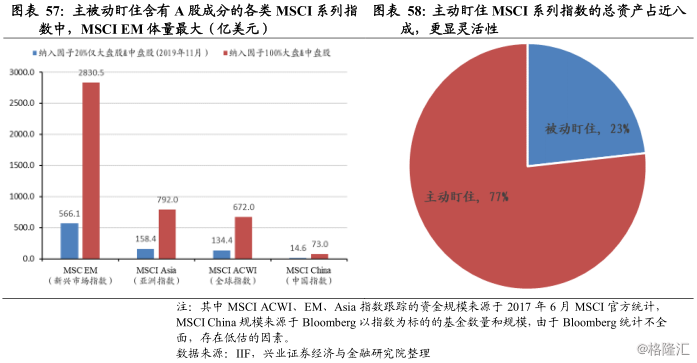 目前跟踪MSCI、FTSE的资金规模接近10万亿美元。与中国作为全球第二大经济体、GDP占G20国家的20%相比,未来全球资金配置中国股市的比例将进一步提升。