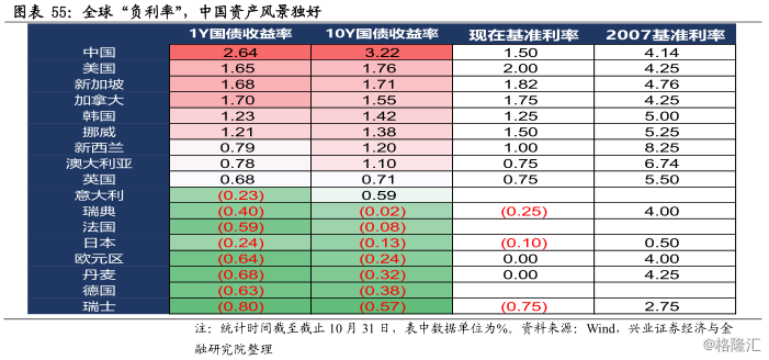 8)全球负利率,西水东进,中国资产受青睐。全球进入负利率、“资产荒”时期,中国相对性价比和配置价值凸显,西水东进,中国资产受到青睐。