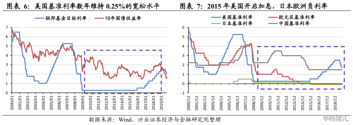 整体来看,2009-2018年间,大部分时间维持低利率和宽松货币政策,为估值提供支持。在2007-2008年的全球金融危机期间,美联储将联邦基金目标利率从5.25%下调至0.25%。一直到2015年,美国基准利率一直维持在0.25%的宽松水平,10年国债收益率也从3.5%下行至2%附近。2015年底至2018年,受经济复苏强劲、持续增长的影响,美联储开启加息,基准利率上调至2.5%,同期日本和欧洲却因为经济不景气进入了负利率时代。
