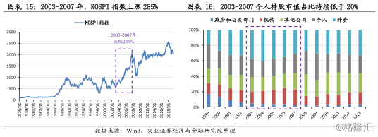 3.1 韩国股市享受开放后的红利,2003-2007年韩综指上涨285%