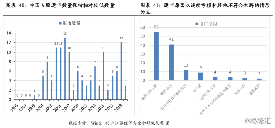 截至2020年2月,A股退市的公司总计130家,剔出因吸收合并等原因主动退市的31家公司,仅有99家为被动退市。其中,一半以上的公司是由于连续三年亏损而触发强制退市的;其他不符合挂牌的公司退市数量高达12家,并且绝大多数为“史上最严退市制度”出台之后被强制退市的。典型代表为长生公司,“假疫苗”事件16个月后,长生生物因社会公众安全类重大违法退市规则,依法强制退市。另外,面值不足一元退市的公司主要集中于连续三年亏损和其他不符合挂牌的情形,*ST华业、*ST雏鹰、*ST印纪为“面值退市”的典型代表。