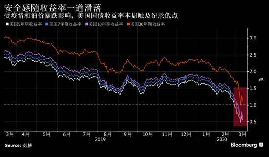 10年期美国国债收益率今年已经暴跌了160个基点,周一触及历史低点0.31%,这是由于全球冠状病毒感染病例飙升以及全球最大石油生产国之间令人震惊的价格战迫使投资者急于寻求避险。