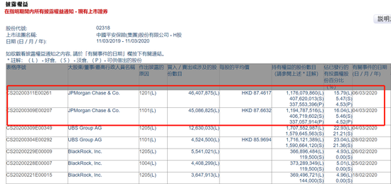 3月11日消息,港交所最新披露数据显示,3月4日,摩根大通增持中国平安H股4508.6825万股,买入的每股平均价为87.6632港元,总价约39.52亿港元,持股比例由15.19%升至16.04%。3月6日,摩根大通减持中国平安H股4641万股,减持后公司持股从16.04%减少至15.79%。