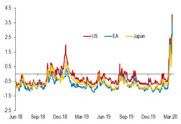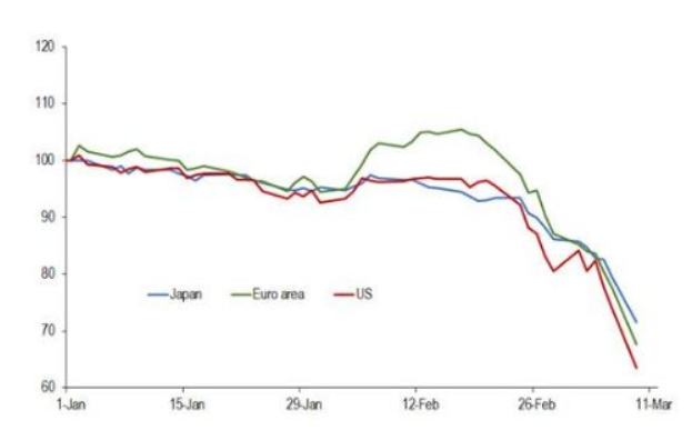 阿德里安分析称,随着全球股票市场波动性急剧上升,经济不确定性也在增加。像美国、欧元区和日本等主要经济体的股市均出现大幅下跌,潜在波动率也在飙升,主要是因为投资者试图将新冠肺炎带来的最新风险考虑在内。