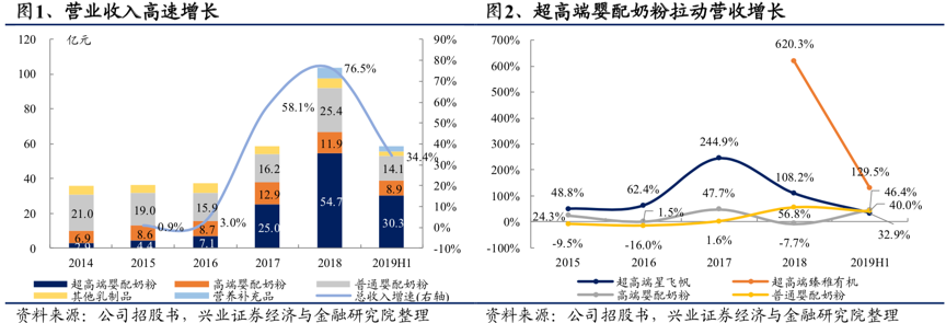 从业绩角度看,2016-2018年,中国飞鹤营业收入年复合增速高达67.05%,归母净利润年复合增速高达131.87%。2019年上半年,中国飞鹤营收和净利润分别增长34.37%和60.41%。业绩靓丽几乎找不到弱点。