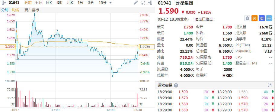 华盛资讯3月12日讯,烨星集团暗盘收涨1.92%,报价1.59港元,不计手续费一手可赚60港元,交易额2660万,最新总市值6.36亿;煜盛文化开盘一度跌超30%,收盘收复跌势最终平收。两只新股将于明日正式挂牌上市。