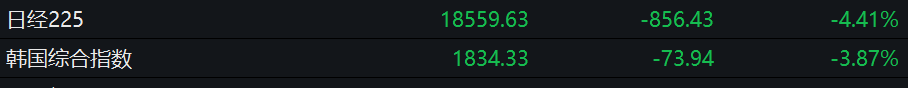 而日经225指数和韩国综合指数也分别下跌4.41%和3.87%。