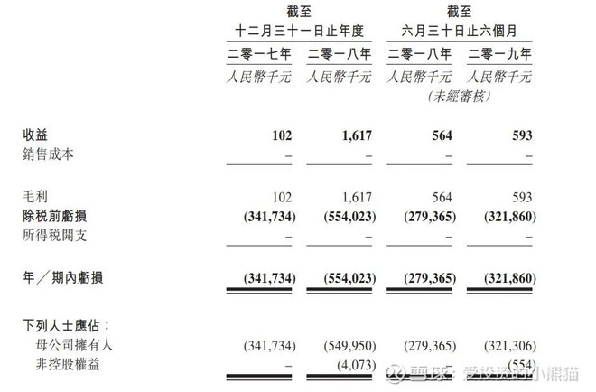 和其他的一些医药企业类似。招股书资料显示,目前,诺诚健华的产品尚未获准进行商业销售,尚未从产品销售产生任何收益。自成立以来的各年度内持续产生经营亏损,截至2017年12月31日、2018年12月31日止以及2019年上半年,诺诚健华分别实现营收10.2万、161.7万和59.3万元人民币,对应净亏损3.42 亿、5.54 亿与3.22 亿元人民币;研发开支分别为6290万元、1.497亿元与9480万元。公司绝大部分的经营亏损乃可转换可赎回优先股、研发开支及行政开支公平值变动所致。