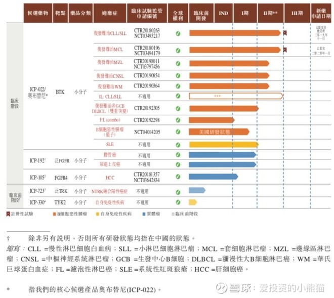 即我们九种高分化型及 ╱ 或新型候选 药物,包括一种复发难治CLL/SLL的新药申请提交予NMPA并获受理及MCL的新药 申请提交予NMPA的候选药物、两种处于I/II期试验的候选药物及六种处于IND准备 阶段的候选药物。