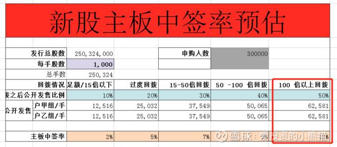 如果超额100倍以上,回拨至50%,中签率可能是12%;