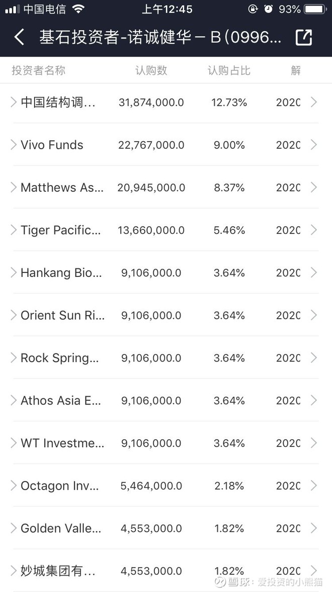 这诺诚建华,基石加起来抢了多少?加起来是有57%国配的货,你要知道公开发售和国际配售可是各50%的货啊,这已经是巨幅超额认购,基石属于国配,并且把绿鞋都算上,50+7.5=57.5%,这么多基石投资者来去抢应该是市场觉得这个100亿 估值太便宜了??这基石都把货分完了,并且还有解禁期呢,那其他的机构你要怎么拿货呢??