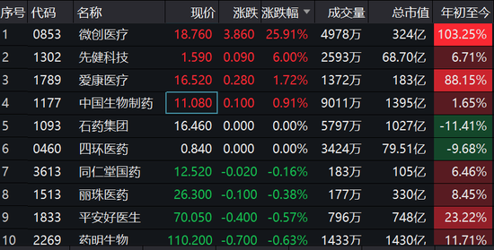 港股医药股强势反弹,其中,微创医疗暴涨26%,年初至今股价翻倍。先健医疗涨6%,爱康医疗、中国生物制药等翻红。石药集团、四环医药目前无升跌,药明生物、平安好医生等跌幅大为收窄。