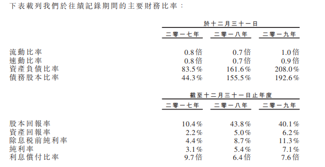 值得注意的,2018年及2019年,公司资产负债比率大幅增加,2017年为83.5%,2018年及2019年则为161.6%以及208%。