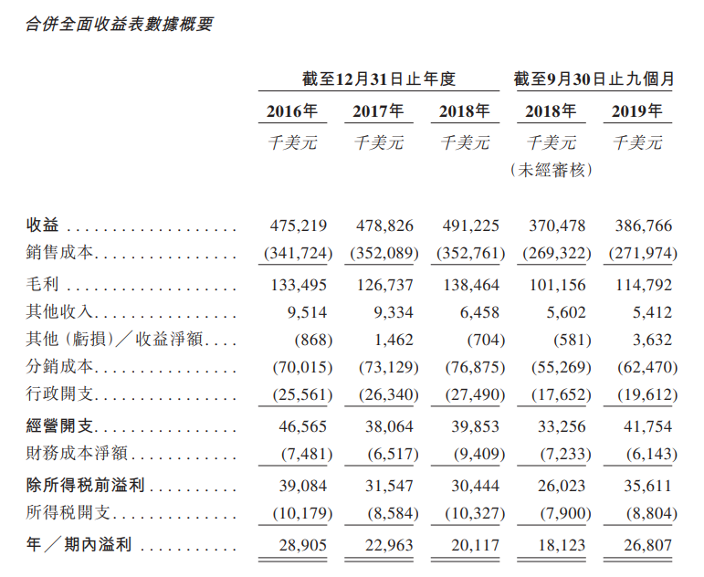 据悉,上好佳2016年至2018年,整体销量分别为14.29万吨、13.91万吨、13.76万吨。营收方面,同期分别实现营收4.75亿美元、4.79亿美元、4.91亿美元。净利润分别为2890.5万美元、2296.3万美元、2011.7万美元,同比分别出现了20.56%、12.39%的下降。上好佳将利润下滑归咎于分销成本及行政开支较高。